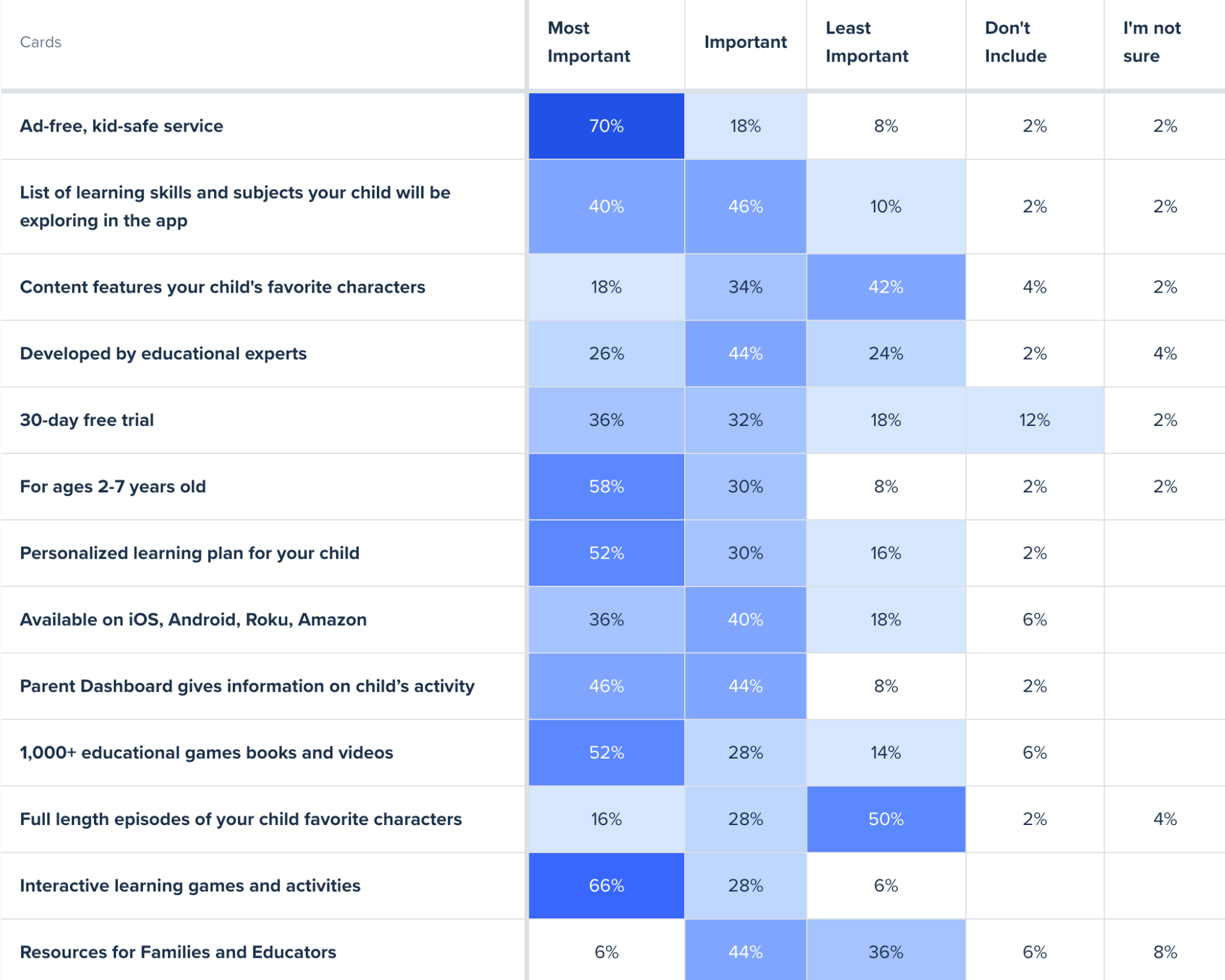 Based on an emailed survey to Noggin subscribers (parents), over ⅓ of 218 respondents view Noggin solely as a video streaming app, when the app actually offers much more educational interactive content, such as learning games and ebooks. Through the survey we also found that 28% of our users are subscribed to Noggin through Amazon Channels which also contributes to this perception.